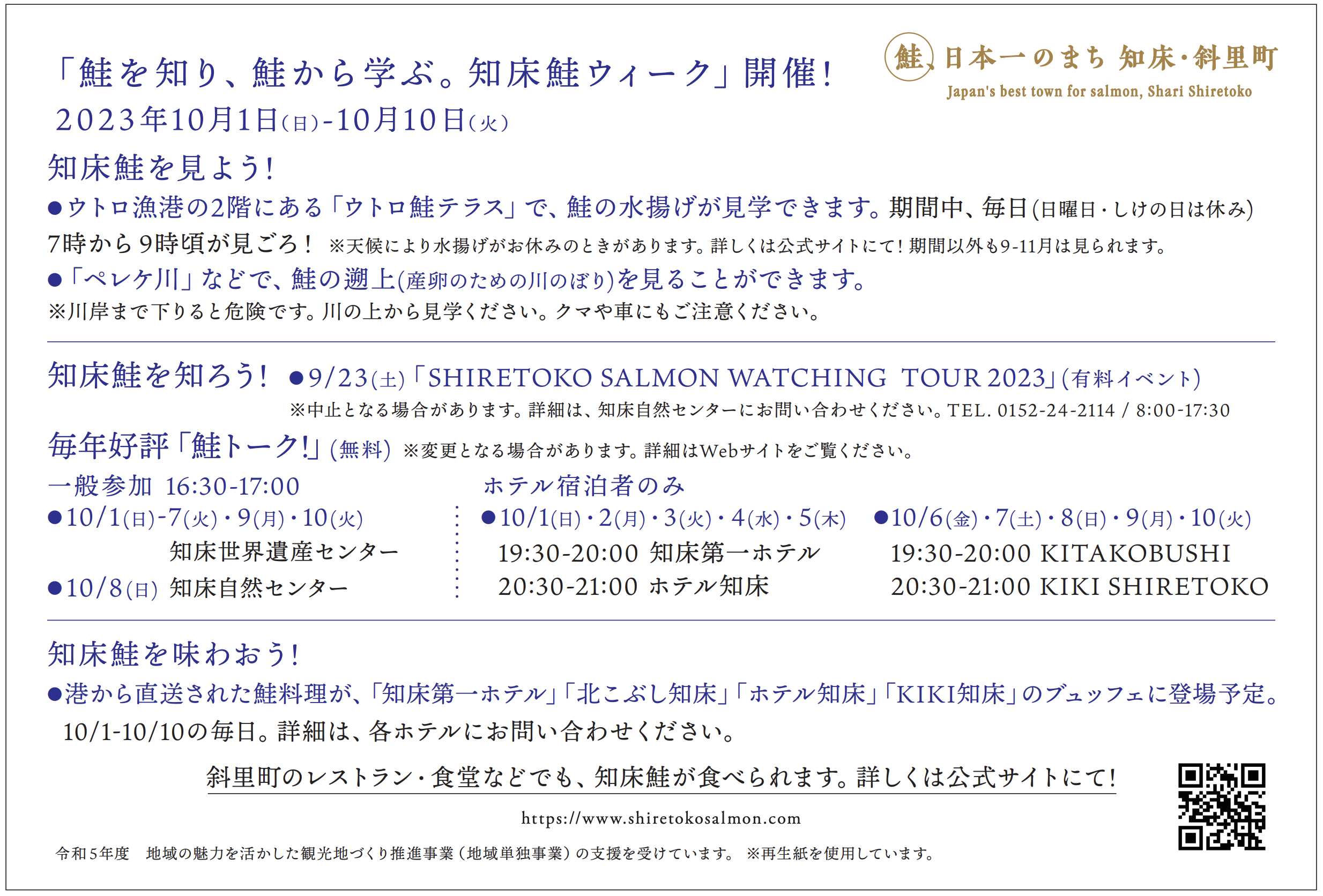 「日本一の旬を味わう!知床鮭ウィーク」開催のお知らせ(2023年10月1日~10月10日)