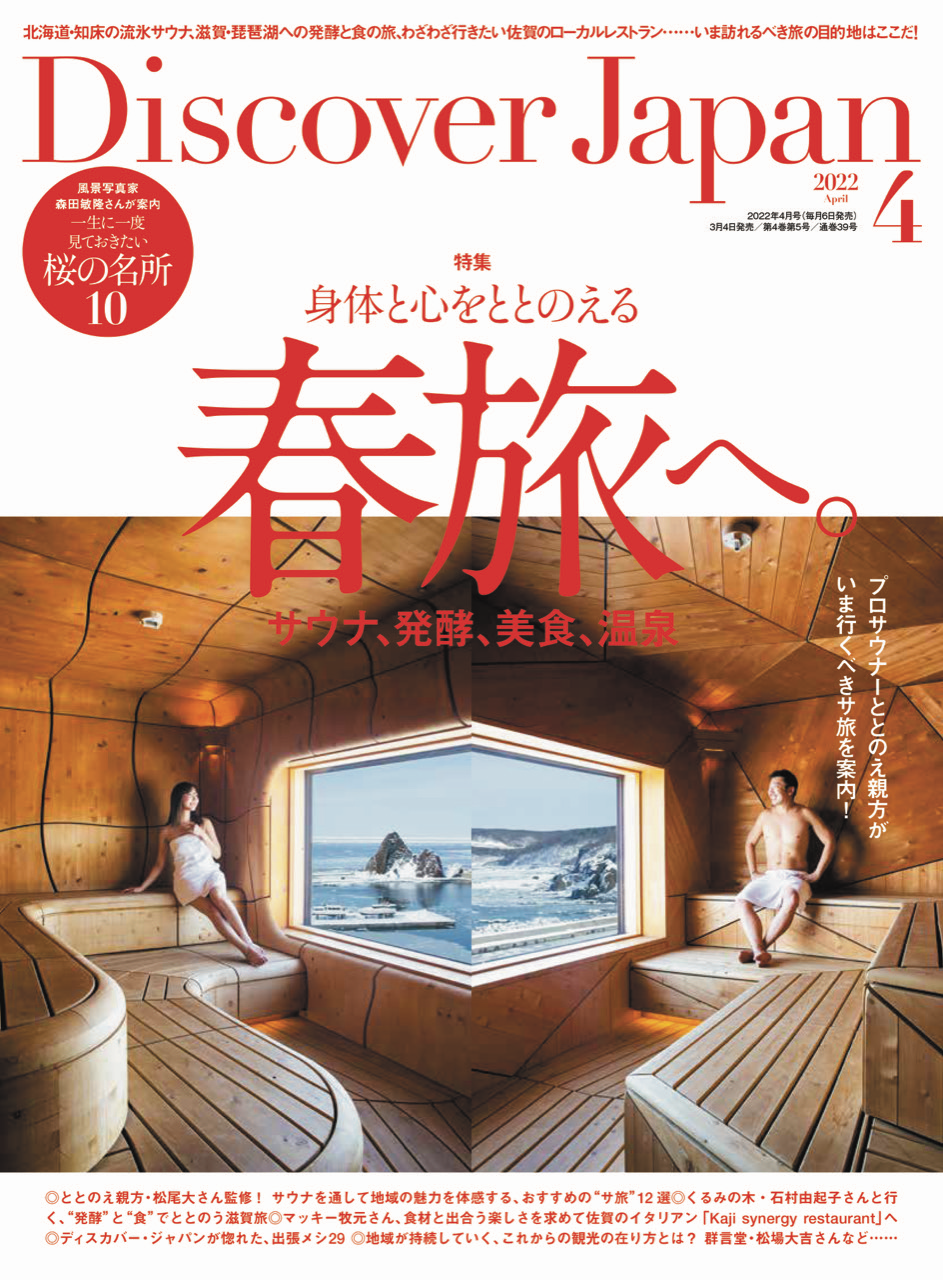 本誌には「ととのえ親方・松尾大さん監修!サウナを通して地域の魅力を体感する、おすすめの”サ旅”12選」の紹介があり、当館・北こぶし知床Hotel&Resortもご紹介いただける予定です。Discover Japan 2022年4月号は公式オンラインショップで予約受付中です。またはお近くの本屋さんなどでお買い求めください。