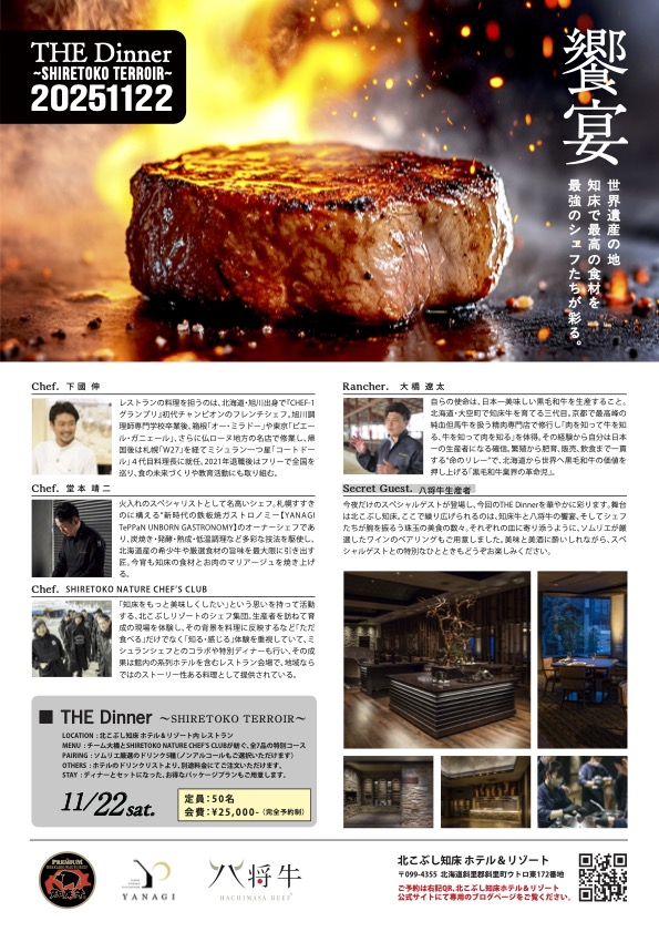 【11/22 限定】※宿泊なし SHIRETOKO TERROIR〜知床の晩餐会〜 一夜限りのスペシャルディナーをコース料理で。イベント参加のみ(日帰り)